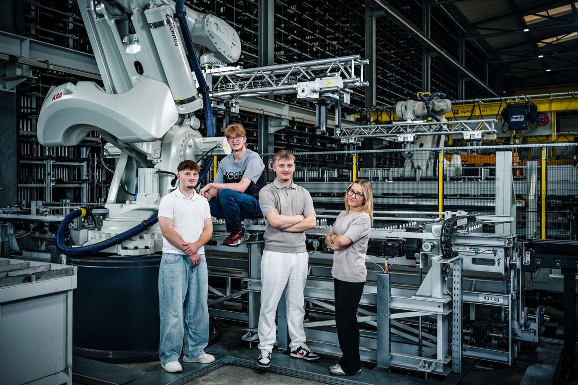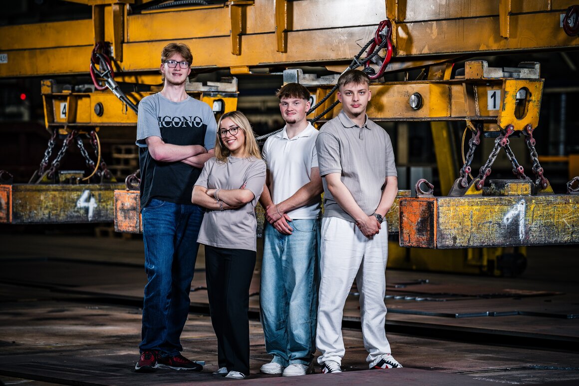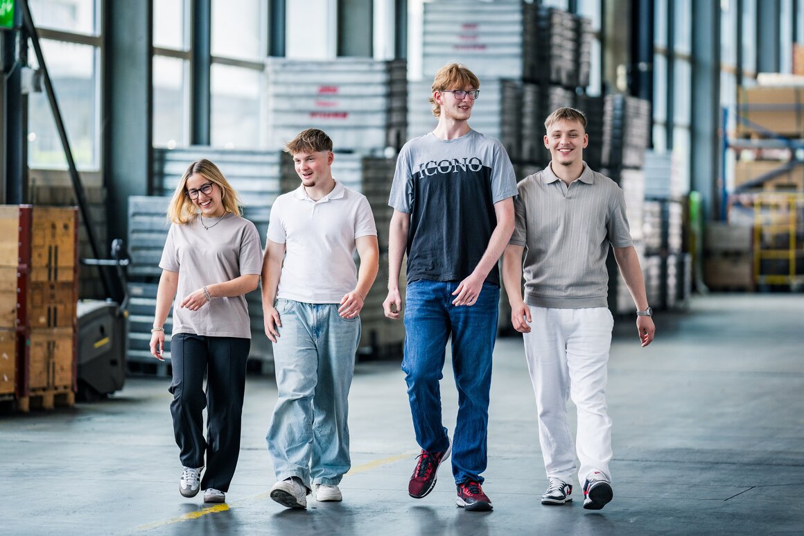 v.l.n.r. Leon Huth (Logistiker EBA), Lea Lovric (Kauffrau E-Profil), Ammar Havić (Logistiker EFZ), Raoul Hüttenmoser (Kaufmann E-Profil BILI)
